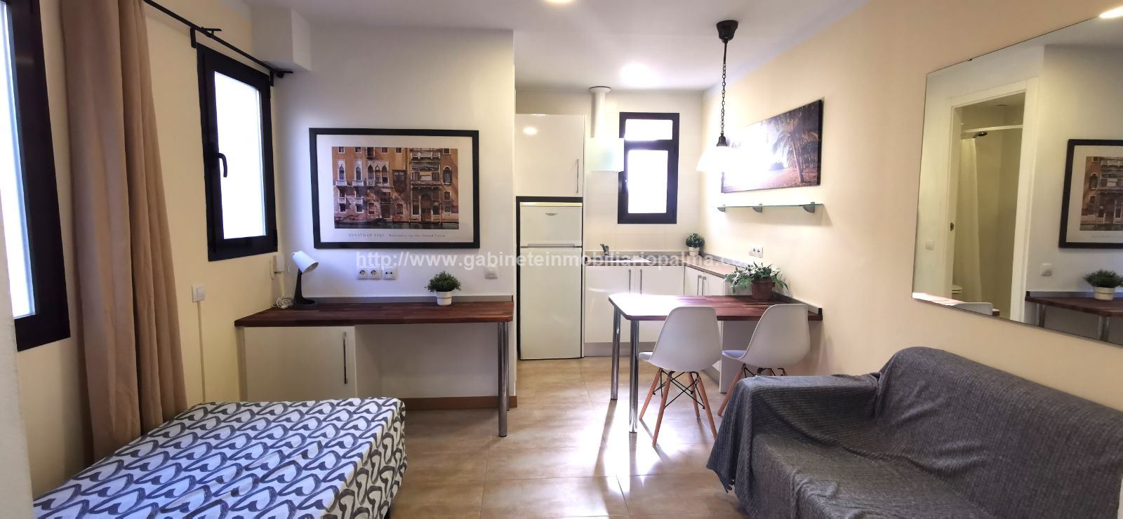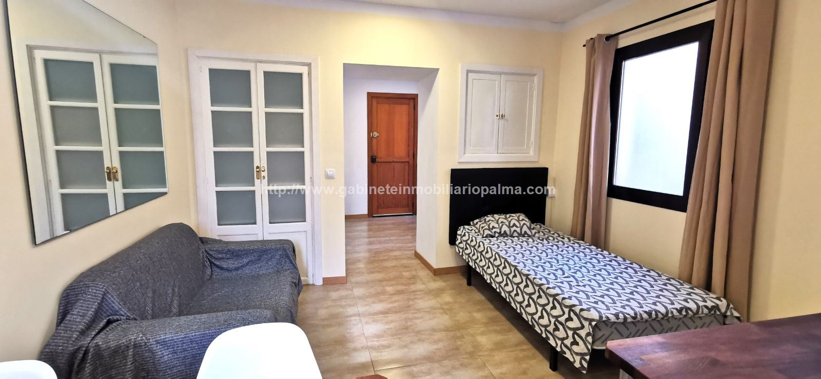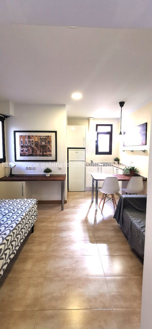 ZONA SAN JAIME. SÓLO PARA UNA PERSONA. Coqueto apartamento, tipo loft, completamente rehabilitado, situado en un edificio antiguo en una zona muy tranquila. Dispone de sala-comedor, cocina y dormitorio, y 1 baño. Muy céntrico. Sin ascensor. Completamente amueblado y equipado con electrodomésticos. Muy luminoso. NO SE ACEPTAN MASCOTAS. Precio alquiler: 800 €. GABINETE INMOBILIARIO PALMA. Telf. 607.526.994