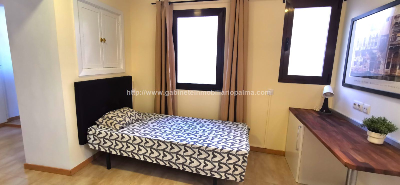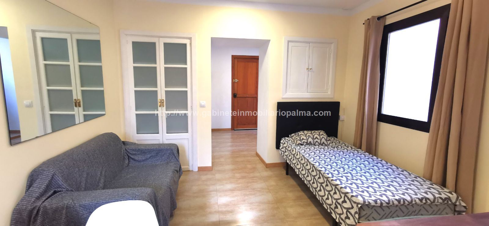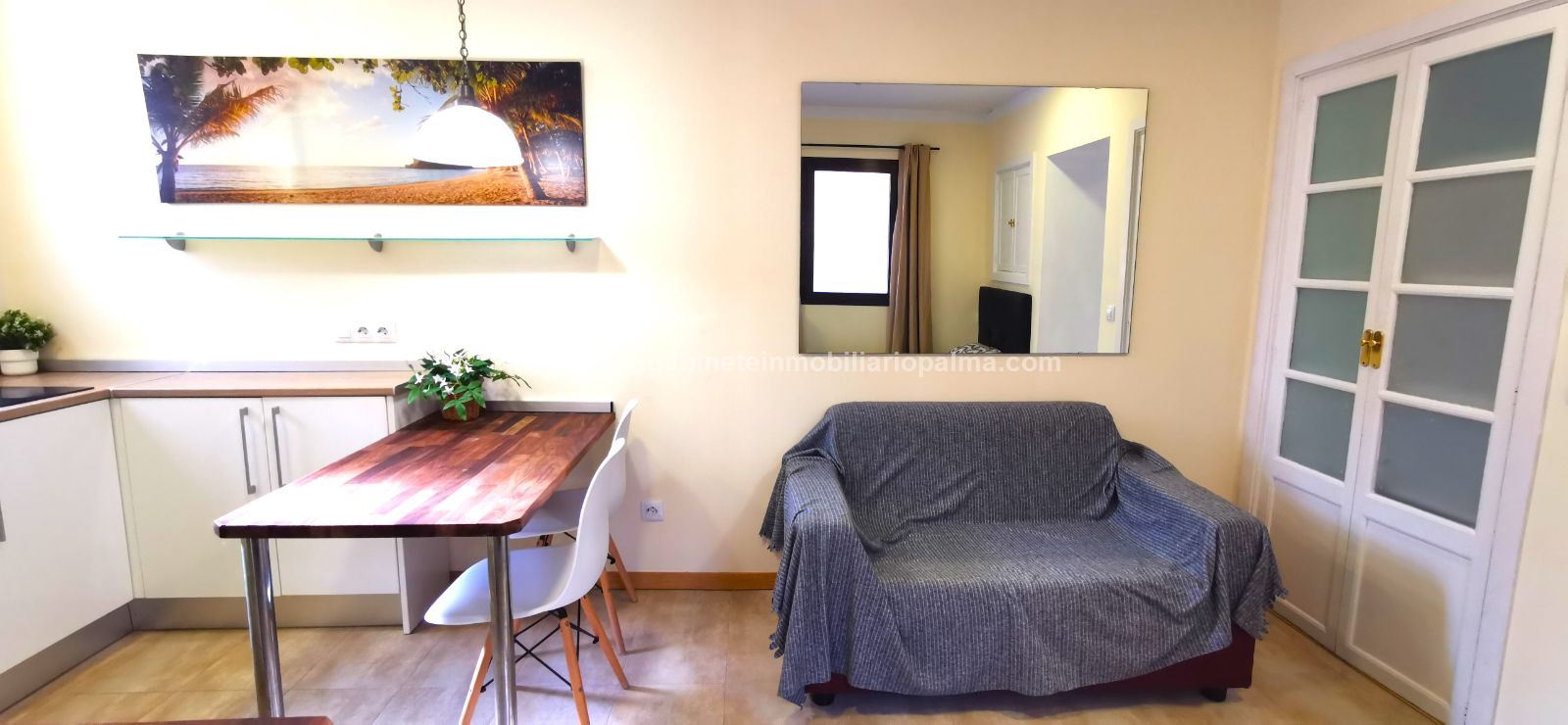 ZONA SAN JAIME. SÓLO PARA UNA PERSONA. Coqueto apartamento, tipo loft, completamente rehabilitado, situado en un edificio antiguo en una zona muy tranquila. Dispone de sala-comedor, cocina y dormitorio, y 1 baño. Muy céntrico. Sin ascensor. Completamente amueblado y equipado con electrodomésticos. Muy luminoso. NO SE ACEPTAN MASCOTAS. Precio alquiler: 800 €. GABINETE INMOBILIARIO PALMA. Telf. 607.526.994